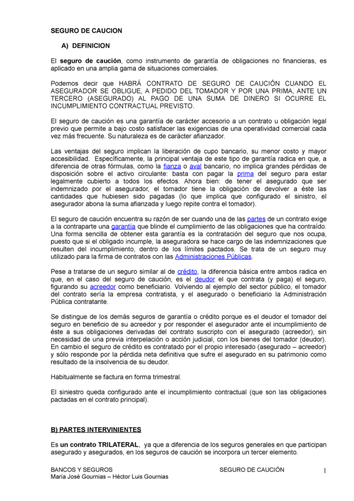 Los elementos principales que integran un seguro de caución son: